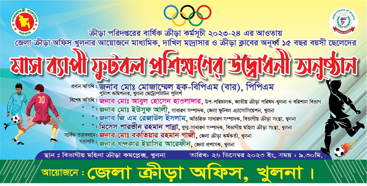 গত ২৬ ডিসেম্বর ২০২৩ খুলনা বিভাগীয় মহিলা ক্রীড়া কমপ্লেক্স মাঠে শুরু হয়েছে অনূর্ধ্ব -১৫ বছর বয়স্ক বালকদের মাসব্যাপী ফুটবল প্রশিক্ষণ ক্যাম্প।